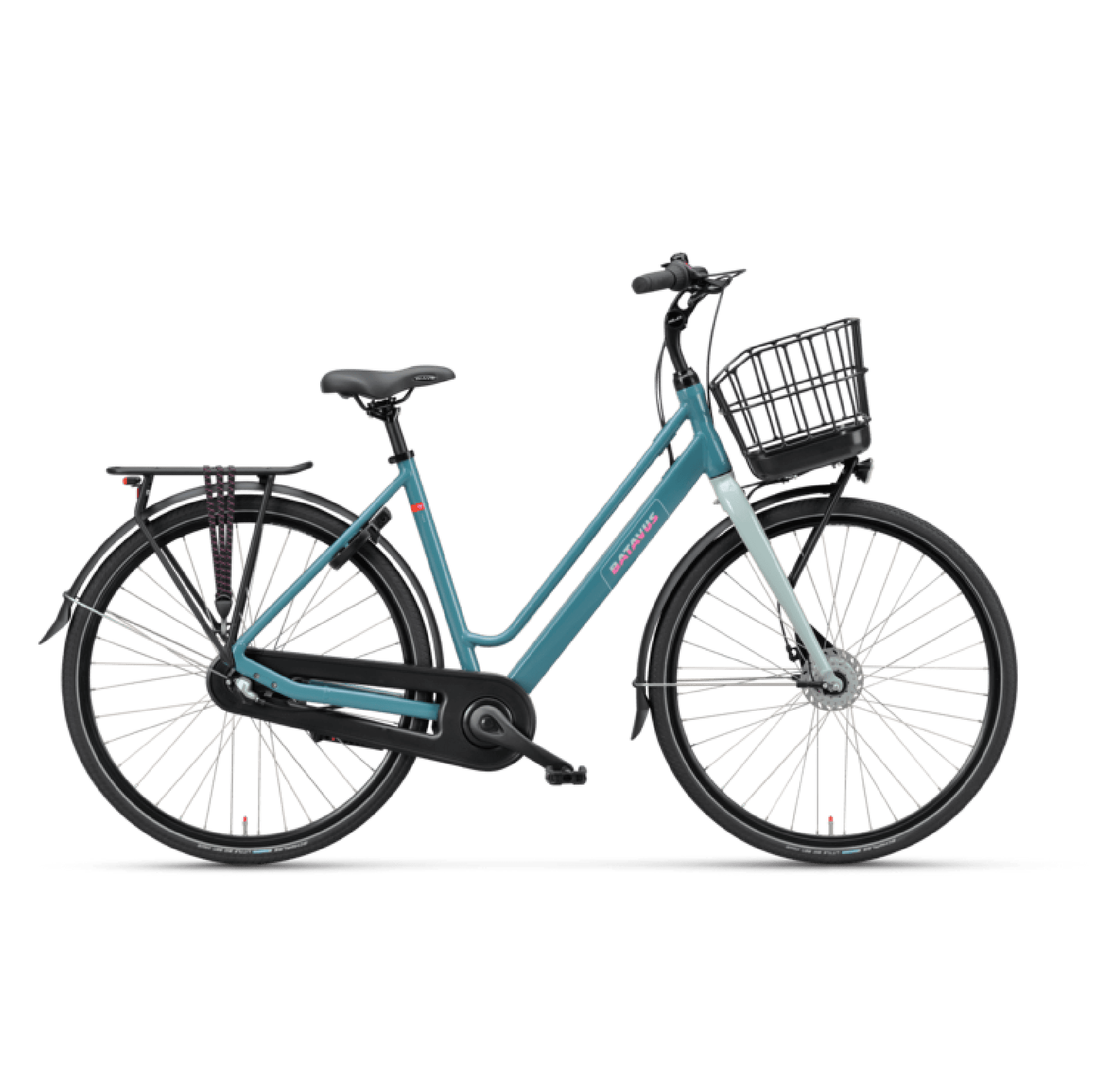 The luggage carrier can optionally be expanded with a basket on the front at a Batavus bicycle shop near you. This allows you to take even more luggage with you.