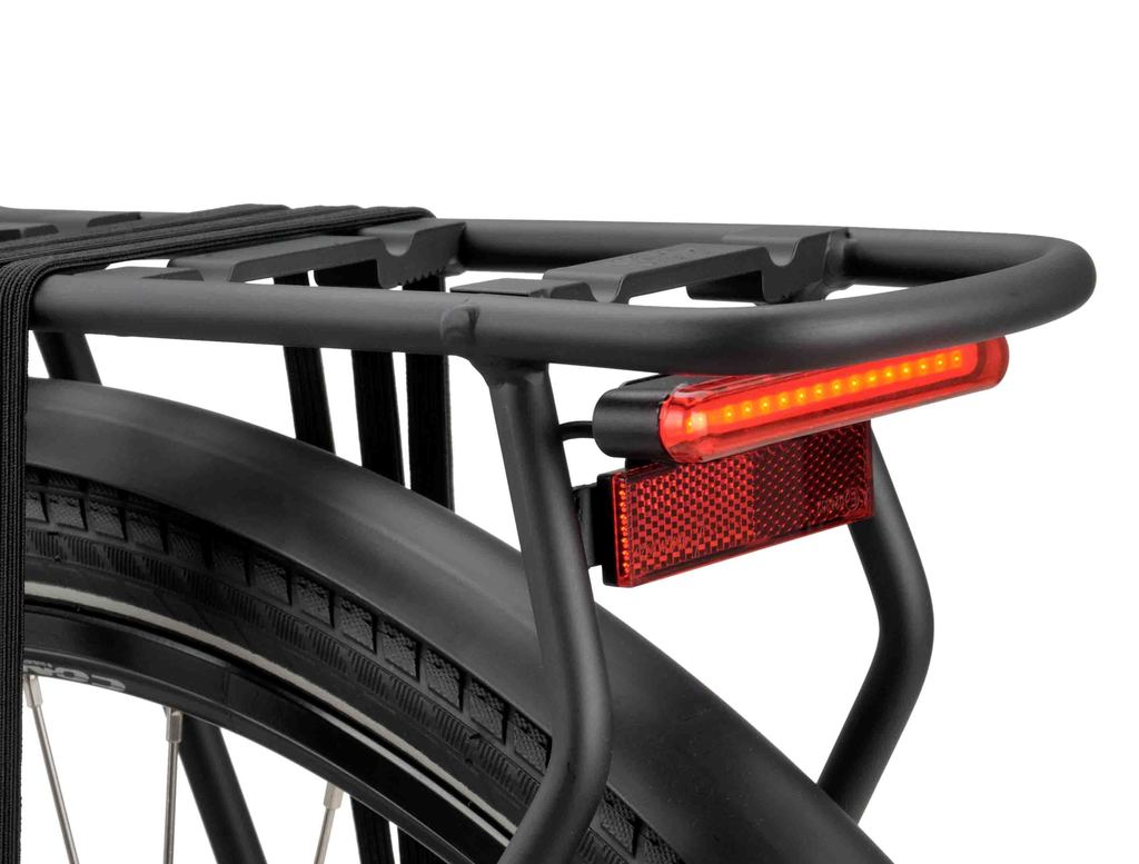 The Batavus Aerline lighting is always on and has a stand light function. The lighting is mounted high on the handlebars so that it is more noticeable and less likely to be damaged during storage. The cables are neatly concealed in the frame so as not to get caught in bicycle sheds.